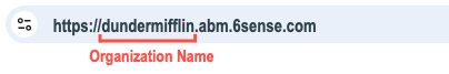 The organization name is typically your company name as it appears in the URL for your 6sense instance. In the example below, the organization name is dundermifflin.